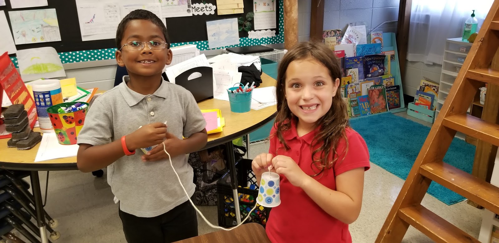 We learned that inventors are great thinkers who improve on ideas and make a change. We were thinkers and worked with our buddies to make our own phones. We continued our learning by measuring the length of each string on the phones and then putting our phones in order by length.